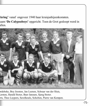 Rond 1960 werd de café-voetbalvereniging van de Grot met de naam ‘De Calypsoboys’ opgericht. Toen de Grot gesloopt werd in