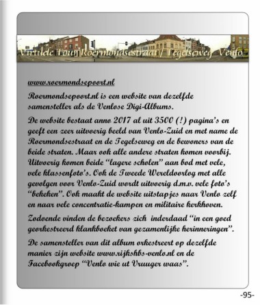 herinneringen. Het verleden laait weer op en “bekeken”. Ook maakt de website uitstapjes naar Venlo zelf