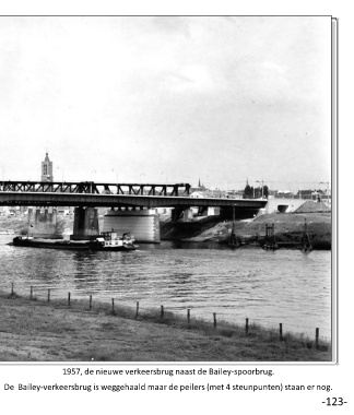 1957, de nieuwe verkeersbrug naast de Bailey-spoorbrug.