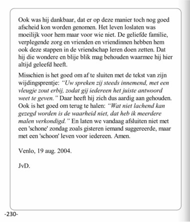 Misschien is het goed om af te sluiten met de tekst van zijn