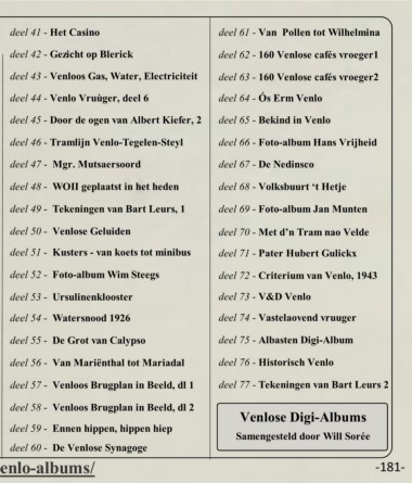 deel 6 - Het Oude Postkantoor deel 26 - Piottewei tot Rosarium, deel I deel 46 - Tramlijn Venlo-Tegelen-Steyl deel 66 - Foto-album Hans Vrijheid