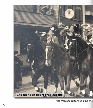 Ingezonden door: Fred Jacobs “De Venlose ruiterclub ging meij as huzare verkleid, ca 1950.” -58- -59-