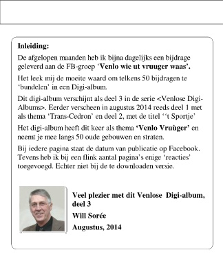 Het digi-album heeft dit keer als thema ‘Venlo Vruùger’ en augustus 2014